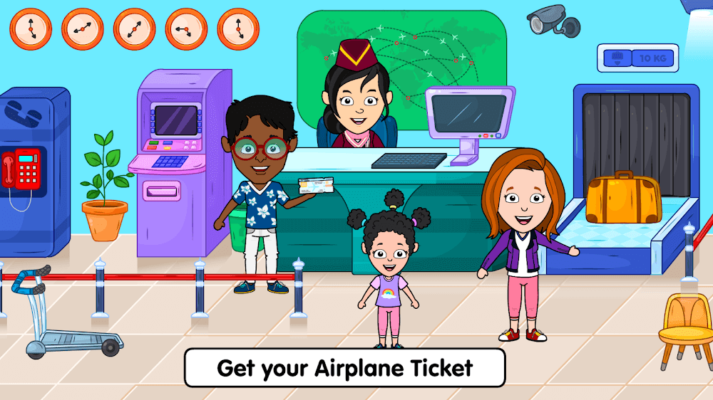 Tizi Town My Airport Games Premium s vending machines, fashion stores, restaurants, and cafes. We will help you find the perfect vacation for our customers, so you must do business with the best service to get as many customers back to your business space. Besides, you should prioritize flights from quality airlines, so customers don’t have to wait too long.HELP CUSTOMERS COMPLETE THE FLIGHT PROCEDURES AND LET THEM ENJOY THE BEST SERVICEAll airport procedures, such as check-in, check-out, baggage weighing, and customs cl