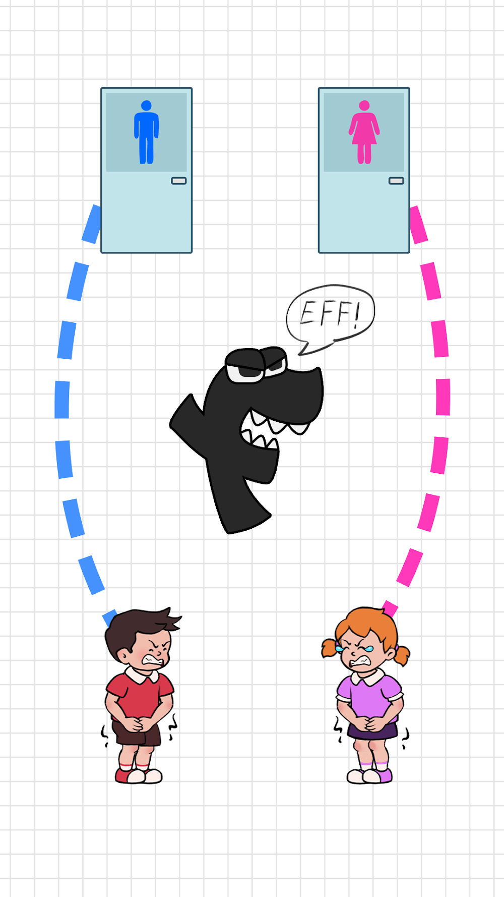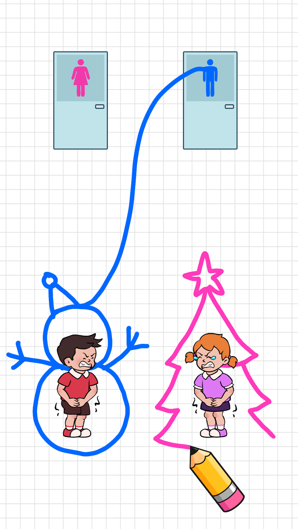 Simple tasks like using the restroom can sometimes be more difficult than expected. At least, that’s how Tom and Anna feel. Toilet Rush: Pee Master will be a fun game for everyone during their break—poor guy and girl who are desperate to go to the bathroom, and no one wants not to make it to the bathroom in time and perform them on the go. Draw lines to the toilet, chop rocks to create a bridge to the toilet, or dig a tunnel to help them escape before it’s