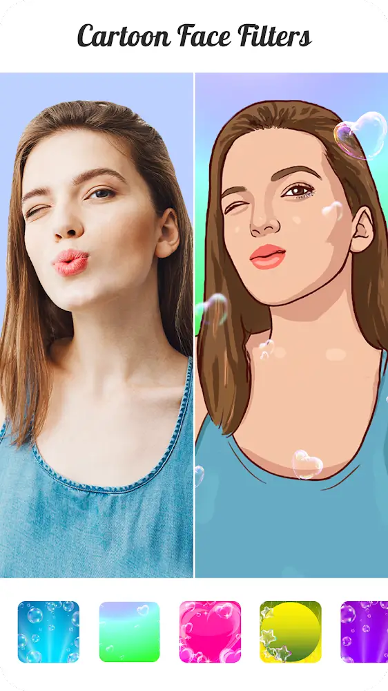 ToonApp is absolutely the gateway for you to enter the world of animation completely simply with just a few editing operations. Users can fully unlock many different features and these resources can be added to create impressive visuals. At the same time, each user can have their own product such as becoming an avatar for a certain social networking site. In addition, combining filters and backgrounds will bring completely new experiences and results to your photos that you cannot ignore, so this is definitely an application you should try using.AMAZING BIG HEAD FILTERSToonApp is an application that helps users see another version of themselves in a completely magical animated world. If you have ever dreamed of becoming a princess in Disney animated movies, this is your chance to fulfill it. Users will be able to use the filters that the application provides to transform themselves into different cartoon versions, and you will choose the appropriate one to post on social networks. At the same time, filters will be what attracts you when using the application because their number is completely diverse and will bring a new feeling every time you use it.Join current trends: Just touch the filter, and you can immediately enter the Big Head event.Update new things: The application will always refresh its resources to satisfy any user.CARTOON PHOTO EDITORThe point to note when using ToonApp is that there are many filters with different characteristics that you will need to choose from. This selection does not cause difficulties for users, but it does take a lot of time because their number is completely diverse. Therefore, you should also be patient when using them, and of course, the result of choosing is absolutely sweet when you have made the perfect choice for you. In addition, this also brings joy to each person because they will be able to satisfy their curiosity while using the application, so this is definitely an experience that you cannot miss. Not only is it used to create beautiful photos, but filters also play an extremely effective entertainment role.Simple selection: From your images, the app can transform any of them into an animated version.Many unique elements: Filter possesses many different features that you cannot ignore.REMARKABLE BACKGROUNDS AND FUN LAYOUTSAnother interesting point when users use filters is that each filter will bring a different transformation and come with completely interesting effects. These can be silhouettes that appear with you or soft colors that move around you. All of them bring satisfaction to users when they can completely transform into the Disney princesses they have always dreamed of. In particular, the effect is not only something that is added, but the background is also something that will be changed. So, a complete fantasy world can be created within seconds, and from there, your creativity will be completely expanded.Change the background: Unnecessary things can be identified and disappear if your selection is correct.Many cartoonish elements: With the opportunity to travel to space, you can go to places you’ve seen in the movies.MAGIC BRUSH & ANIME PHOTO EDITORThe application supports you in the process of using the background, and if you don’t like the current background, you should try another one. It can be a colorful background or a gentle background with pure colors. So, users freely edit and combine all the things. This will make a new product beautiful. Your experience will grow after each use, so you don’t hesitate to be creative because of new ideas for an interesting trend.Simple to use: Just touch a suitable option, and your image will immediately change.Impressive filters: The resources within the app are selected to satisfy anyone who tries it.Fun design: Since there are no constraints, you have the freedom to design a complete or whimsical version.AMAZING PICTURE TO CARTOON CREATORUsers must fine-tune the details to produce a satisfactory product. Users can completely adjust the level of the elements they add and then create a product. At the same time, this editing depends on the product characteristics you put into the device, and if they meet the requirements, they can be resolved quickly. From there, avatars on social networks are often the destinations for products that you will create later.Many interesting filters: Artistic brush strokes can be easily added to images.Possessing an impressive avatar: Users should try changing themselves into a more beautiful version, like turning themselves into a cartoon character.Many styles for you: Portrait becomes unique when many different filters are applied to suit the preferences of many people.