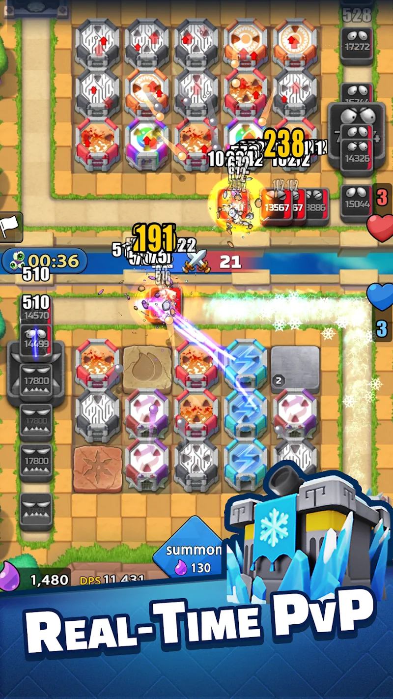 Tower Defense PvP: Tower Royale develops a series of tower combat activities combined with the power of cards. Players will have to fend off attacks from other forces. The game will satisfy players with the precision and excitement of each game. In each match, players can freely devise strategies and adjust towers to achieve the best results.MANY TOWERSThis is an interesting game. It allows players to use the power of towers to destroy an army. They are gradually entering the base. Players need to eliminate all approaching threats to avoid being taken over by enemies, which mainly is fairly significant. In each match