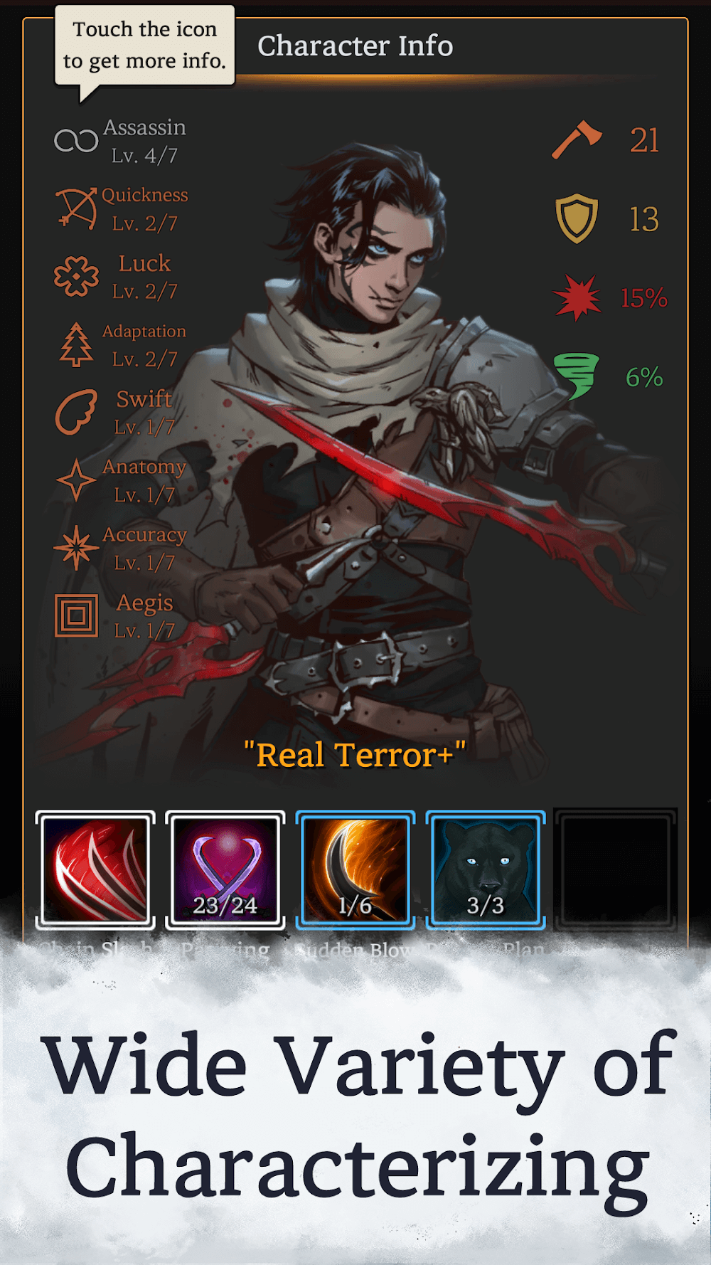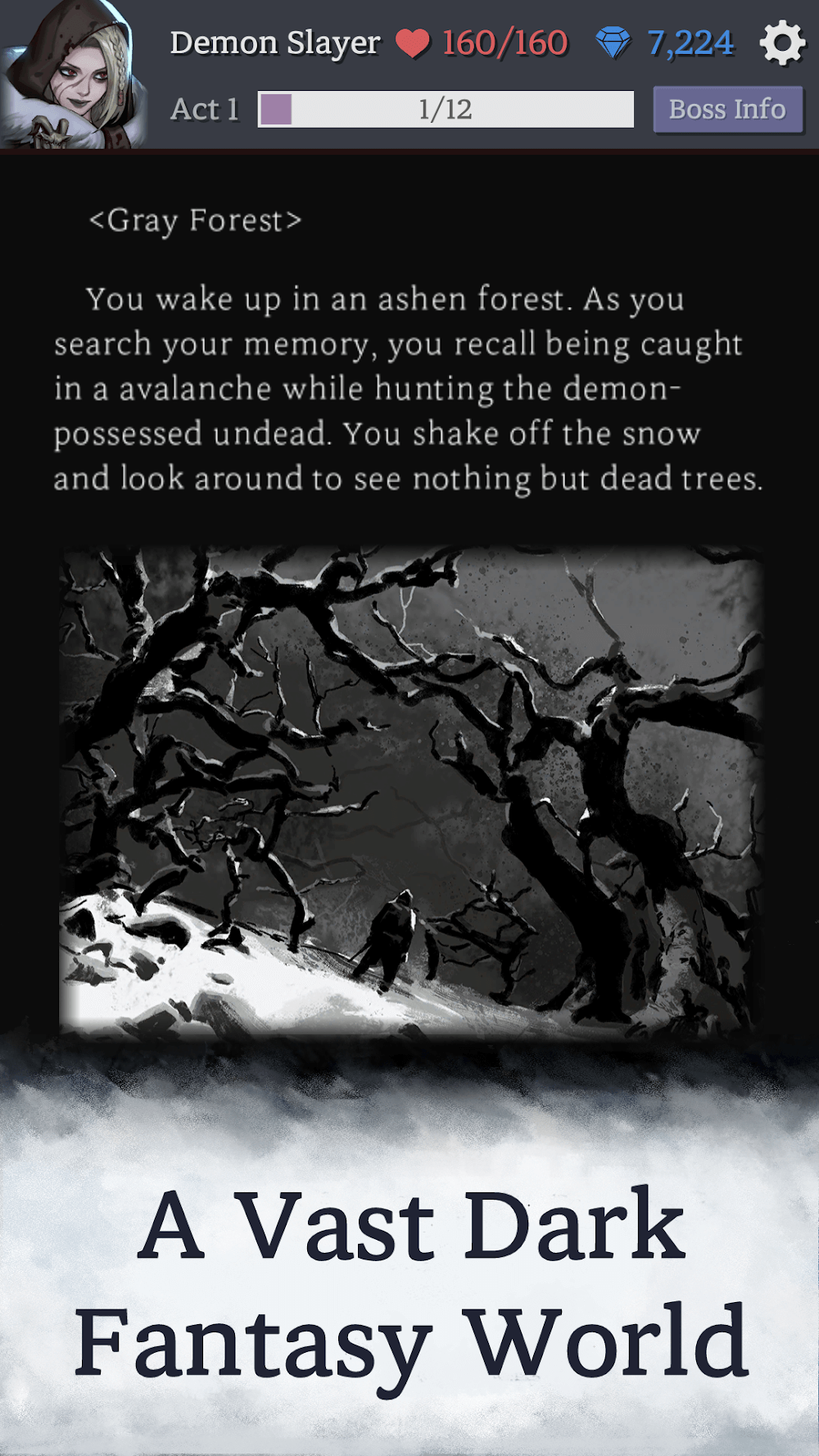 Tower of Winter Mod APK – Roguelike role-playing game with text-based combat set in a grim and foreboding fantasy realm.Tower of Winter tells the story of the player’s journey in a world with pure black tones. At the same time, this land has many Old Gods and eternal water becomes a mysterious destination for many people. You will need to survive in this dangerous world with skills that are constantly unlocked.IMMERSIVE DARK FANTASYIn a dark fantasy world, players will search for myste