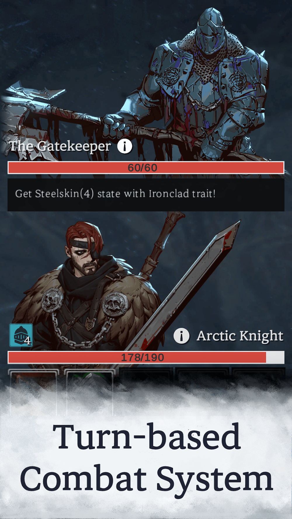 Tower Of Winter Premium people aim for with many different conspiracies.Atmospheric Experience: By adding the characteristics of the dark fantasy genre, players will be able to recognize the environment. They often have a dark tone that signals many tragedies ahead.STRATEGIC ROGUELIKE COMBATIn many different situations, players will not be able to avoid battles from the enemy. Therefore, they need to quickly complete it with the current powers they possess.Turn-Based Battles: To be able to survive in a dangerous