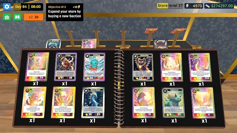 Trading Card Mart Owner Premium able when everyone wants a booster pack to expand the deck.Host Customer Events: Besides trading different types of cards, each player should try to organize events. From there, many customers will come to compete and continue to stick with your store.EXPAND & PROFITGameplay not only satisfies the players’ needs but also satisfies their passion. In particular, the strategy of the game is also clearly shown when each person tries to maximize profits.Dynamic Pricing Strategies: Each player must think abo