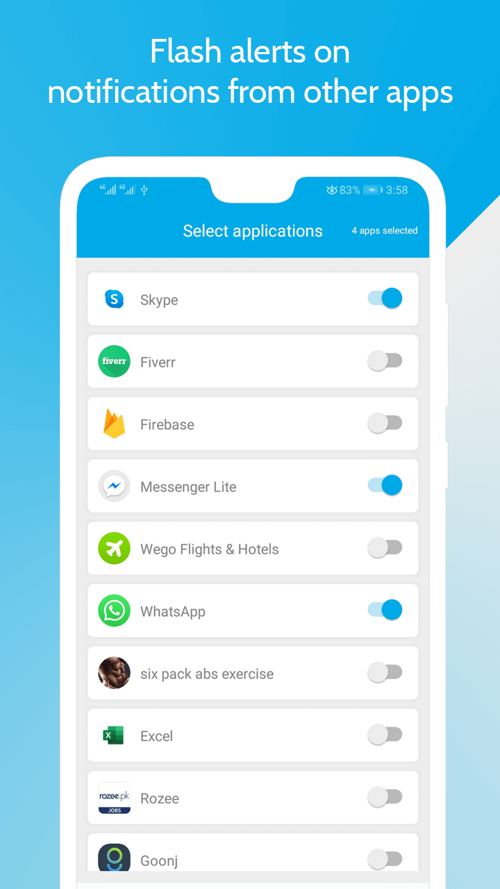 Ultra Flash Alerts Blink Flas Premium he app has extensive customization sections with different settings and options to give you the leisure of altering a personalized flash for your phone. Through this section, the flash will act differently, making your device more catching and allowing for certain actions to proceed with silence. Thus, the simple yet effective flashing actions will bring you many benefits if utilized effectively for different scenarios or situations. That includes setting up specific flashing styles