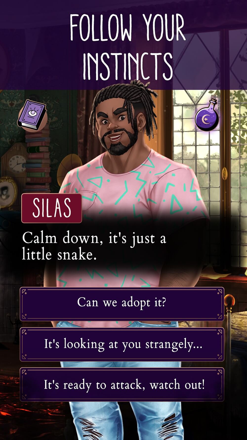 Uncoven The Seventh Day Mod Apk s fascinating developments that will immerse you and captivate you all day without feeling bored.Romance, horror, magic: The game is a combination of extremely interesting themes, bringing you the most attractive stories interwoven with horror, romance, and magic to give you extremely attractive experiences.Impactful player choices: You will have to decide your life by making choices. The game will bring you unique interactive stories, and you will have to make decisions to choose your path, givi