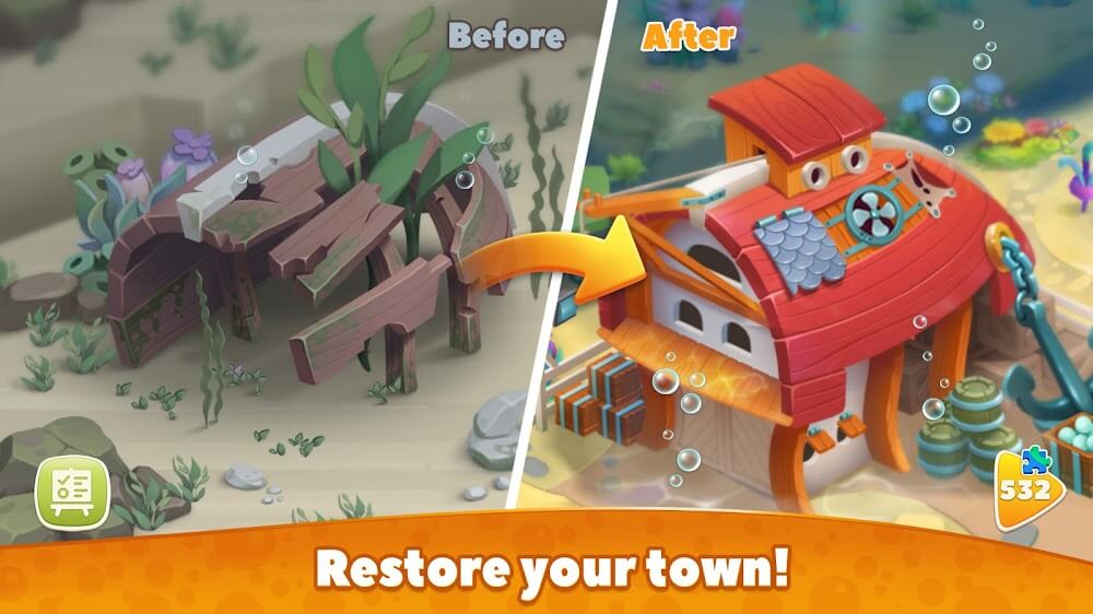 Undersea Solitaire Tripeaks Premium o conquer and break all the puzzles you receive.Challenging levels: The game brings you extremely unique levels with different levels of difficulty. The levels will gradually increase in difficulty to best suit your level, making you always interested in the game without feeling bored.TOWN DESIGN FEATUREComing to this game, you will be able to design your own town. You will be able to decorate and arrange everything in the town yourself, giving you an extremely familiar and perfect city, imbued wit