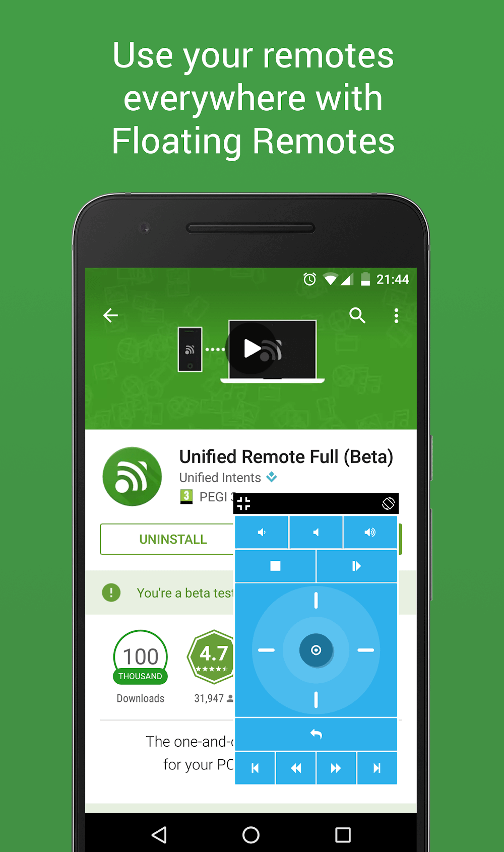 Unified Remote Full Premium e as you wish.Eliminates physical remotes: Previously, you would have to control the remote by physical means, but now it has been eliminated to meet all your usage needs in this application.Increases daily efficiency: The application meets the efficiency as well as the convenience to meet different needs and purposes.WIDE RANGE OF SUPPORTED PROGRAMSBeautiful interface, easy-to-use features to meet the needs of users. The application also upgrades and offers different types of security to protect your device. More specifically
