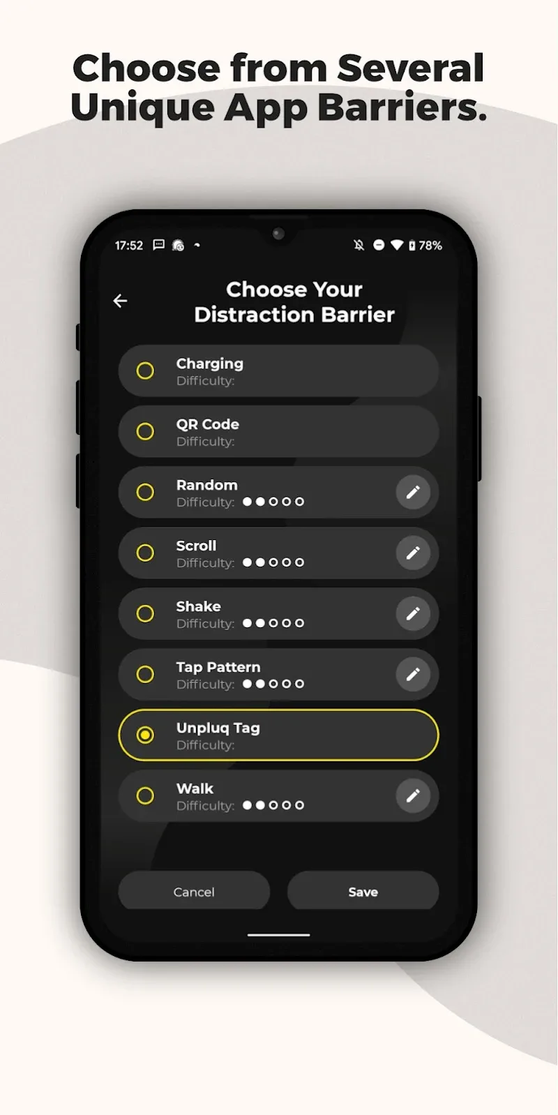 Unpluq Control Your Time Mod Apk e to complete personal work. Too much scrolling on information on the device can lead to abuse. Users will depend on mobile devices without being proactive in their work.Break Phone Habits: The time when the applications are locked will be the quietest. Users can solve the difficult puzzles of the application to unlock. If you want to use the application, find a way to overcome the barriers. A series of difficult requests will be given. Users may lose patience and give up using the phone.Mindful App Usage: During the pre-set time, users will not be able to open the locked applications. This application will lock other application