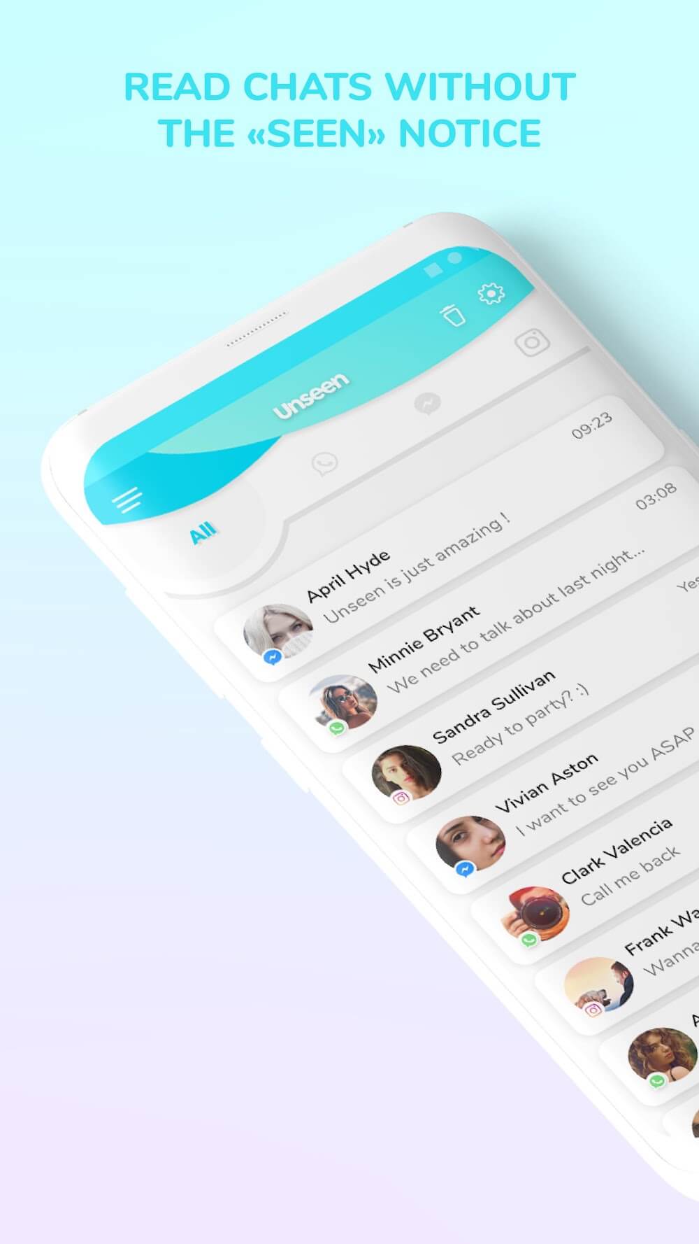 Unseen Mod APK is a clever application that assists you in configuring privacy settings on social networks. The application allows you to read messages without the sender knowing you have done so. The application allows you to have the best messaging experience possible by avoiding annoying and distracting messages. You can easily read the message without leaving any trace of viewing it by clicking the green tick to check the message.INCOGNITO MODE IS AMAZINGThe application allows for efficient operation via chat apps such as Instagram, Zalo, Messenger, and many others. All your information will be displayed in incognito mode, and you can read any message without fear of being detected. People who send you messages will not be aware that you have seen their messages. As a result, you no longer need to consider disconnecting from the internet or activating offline mode. You can watch videos and read messages without being bothered.It displays regular messages and allows you to view and listen to audio, video, and image files without fear of being hidden. The application supports message display optimally, allowing you to avoid annoying messages. The application has a simple, eye-catching, and user-friendly design that allows you to access messages and organize information that has been viewed easily.NICE AND EFFECTIVEYou will receive all incoming messages and can easily and neatly organize them. The application offers many useful features to users to provide the best chat experience possible while avoiding potential problems. You can read messages completely anonymously without revealing any seen notifications to the other person, and you can do a lot of other things at the same time. Furthermore, you can customize the design of your favorite message interface to improve your experience. Please download Unseen – No Last Sight and enjoy the best entertainment moments.