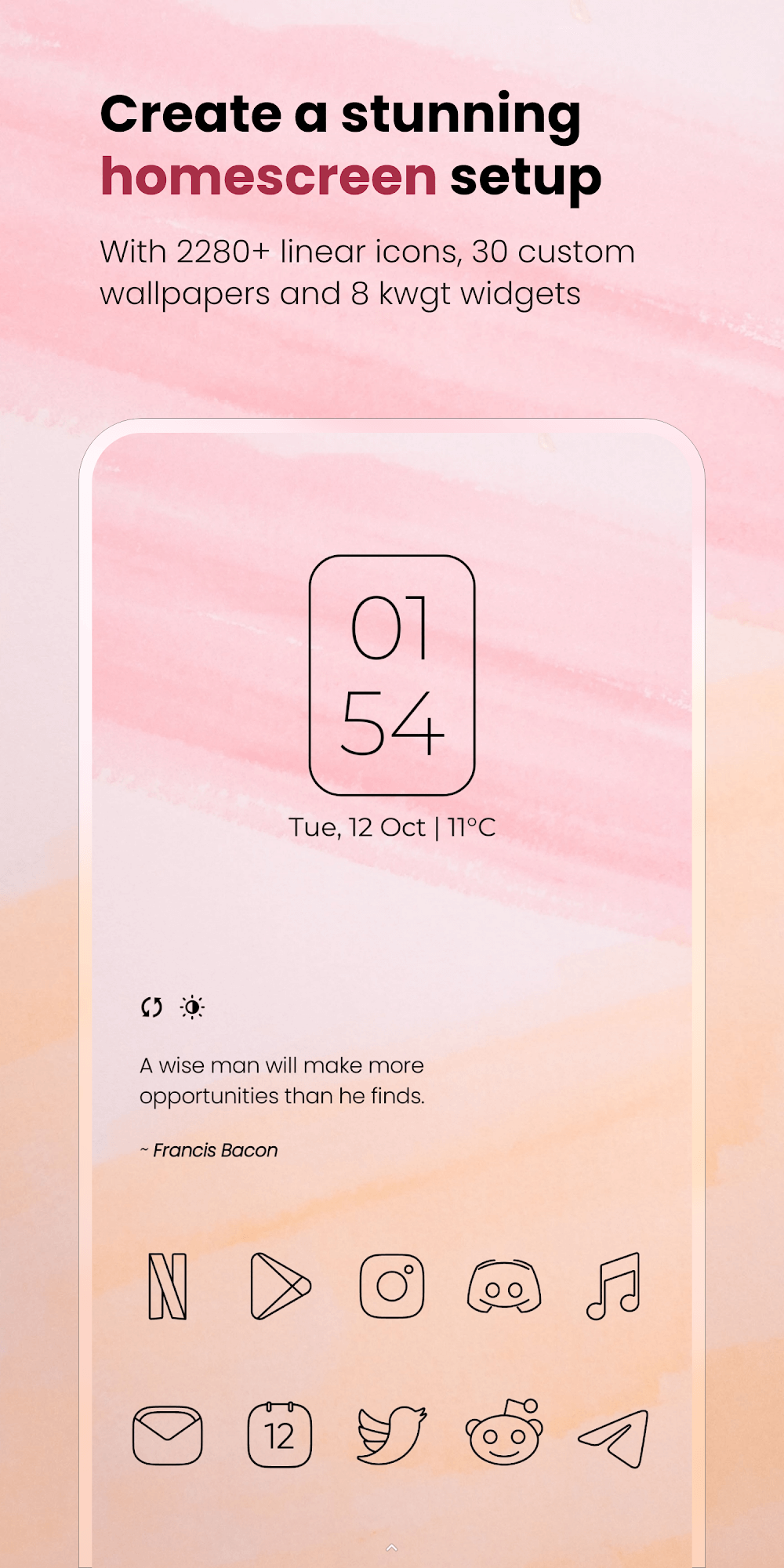 Vera Outline Black: Icon Pack MOD APK – Elevate your Android phone’s look with clean, minimalist black outlined glyph icons.Vera Outline Black: Icon Pack is a perfect choice if you love the dark style. The system provides a series of resources to activate and bring a new look to each feature next to the icon. At the same time, their number will increase every week and attract the attention of each person.STYLISH ICON DESIGNAccess to impressive designs of icon packs will often bring different experiences to each person. Therefore, you can completely unlock new interfaces.Modern Minimal Aesthetic: The system gathers more than 7,127 designs with characteristic black outlines. This is completely understandable so that everyone can easily access a simple interface.Complete Visual Suite: Everyone can try out wallpapers designed exclusively for current icons. At the same time, many system features can also change their appearance.Alternate Icon Support: elements with effects will often have their own support. For example, calendars often have interfaces corresponding to each new day.USER-CENTERED EXPERIENCEEveryone needs to update new features and take advantage of their different potential. At the same time, operational stability is usually not a big problem.Broad Launcher Compatibility: Any launcher will quickly operate stably with the current icon pack. Therefore, installing a suitable launcher is an important step.Frequent App Updates: The application’s updates usually take place every week. Therefore, users often feel eager to find a new experience for the current application.Risk-Free Purchase: Once you have taken the application’s resources, they will usually be applied immediately. You can see impressive and detailed designs.