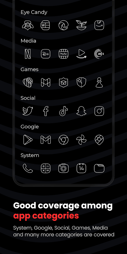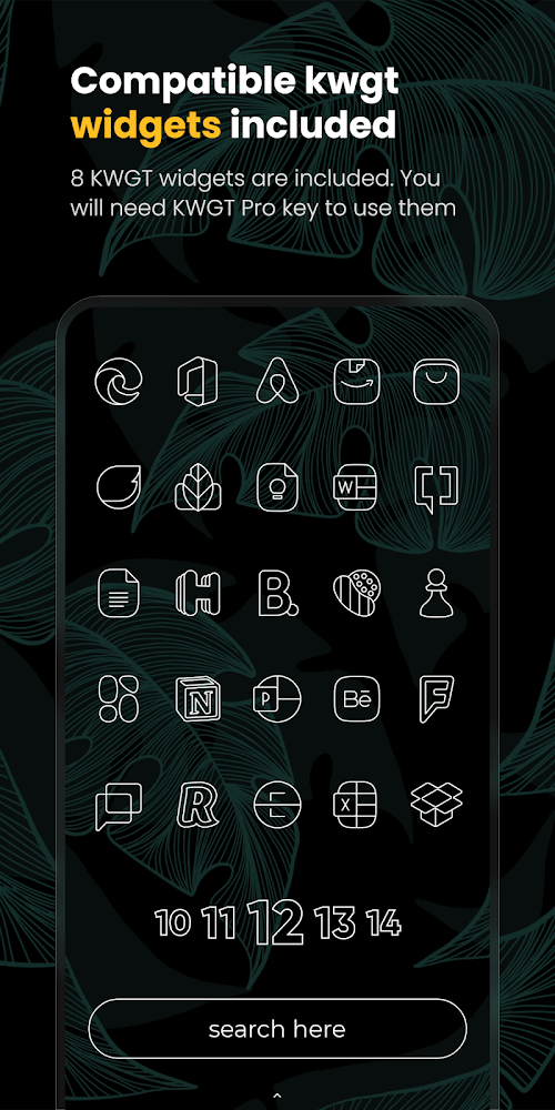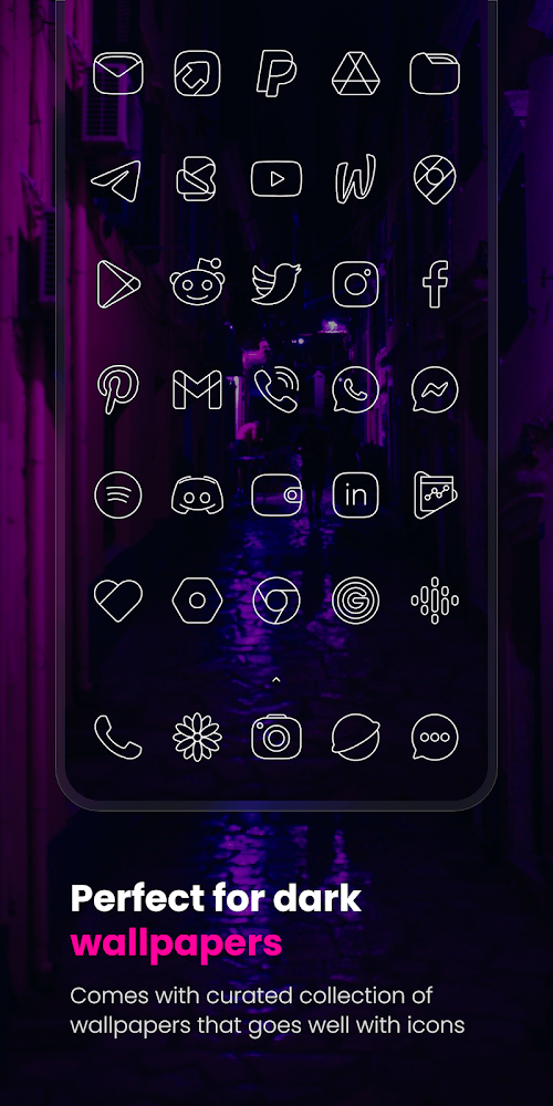 Vera Outline White Icon Pack is the ultimate upgrade for your Android game. This set of flat, linear icons will make your mobile device look and feel completely new. These white-outlined glyph icons are simple and elegant, adding a touch of class to your home screen and app drawer. More than 5,190 icons, 25 beautiful backgrounds, and 9 KWGT widgets are included in the comprehensive Vera Outline White bundle. You’re about to enter a whole new dimension of home screen customization.A NEW DEFINITION OF SIMPLICITY AND GRACEVera Outline White Icon Pack is a great way to clean up your icons and replace old ones. This one-of-a-kind set puts a premium on understated style, with sleek, uncluttered lines and a minimalist design that will make your gadget look new. Your icons will look sleek and contemporary, with white strokes around each letter. Adopt a minimalistic approach, and your home screen will become an aesthetic triumph.LARGE ICON COLLECTIONVera Outline White Icon Pack gives you over 5,190 icons to use in a fresh new look for all your mobile apps. This set of icons is perfect for everybody, from social media addicts to productivity pros to gamers. There are many different app icons available, from well-known to less well-known. And don’t panic if you find an icon that doesn’t fit any certain theme! Masking choices are available in Vera Outline White to make those icons blend in with the rest.MODIFY ANDROID TO FIT YOUR NEEDSVera Outline White Icon Pack makes giving your Android device a unique design easy. You can make a completely custom look tailored to your tastes by switching out the standard icons with these beautiful glyphs. Use icons that have meaning to you to unify your device’s design. This icon set lets you completely personalize your smartphone, whether you want a sleek and modern app appearance or a more whimsical vibe.SIMPLE ICON REFUND AND REQUEST PROCESSWe get that the number of apps your phone supports may exceed the number of icons available. The Vera Outline White Icon Pack will help you out, though. You can get your money back if you are not completely satisfied with your purchase within 7 days. But if you can wait a week, we update our app every week so that more apps will be supported in the future. We also provide Premium icon requests for those who would rather not wait in line. If you upgrade to Premium, we’ll ensure the desired icons become the pack the next time we update it.COMPATIBILITY AND EASE OF USEThe Vera Outline White Icon Pack works flawlessly with Nova Launcher, Lawnchair, Niagara, and other custom launchers. It is compatible with the stock launchers on your device, including Samsung’s OneUI, OnePlus, Oppo’s Color OS, and Nothing. This wide range of support assures that this icon pack may be readily applied to your preferred launcher so you can take advantage of its beautiful aesthetics. You no longer need to use the boring factory icons on your device. You can make your Android device seem and feel brand new with the help of the Vera Outline White Icon Pack. These white-outlined glyph icons are simple, elegant, and modern, providing a splash of style and character to your home screen and app drawer.