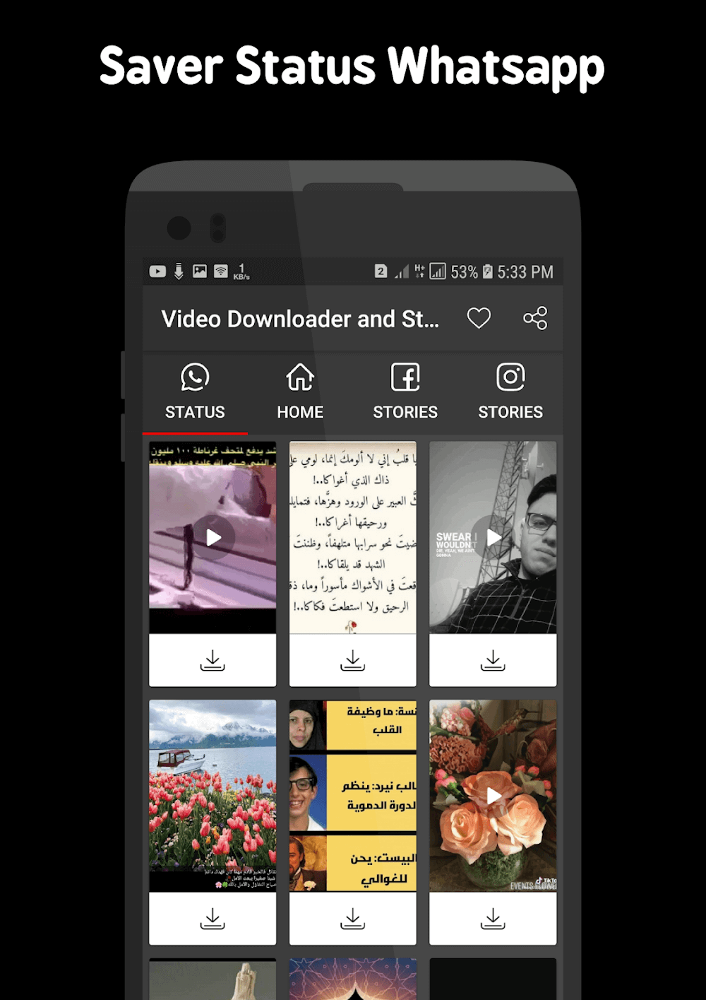 Video Downloader And Stories 2 Premium d Instagram StoriesJust like Facebook, users have the right to download interesting stories, videos or articles on Instagram to their archive. You will log in to the Instagram application, then browse the posts, and if you like them, you can download them. For people you don’t follow, they set private mode so you can’t get the videos on their page. The downloading process is quick and ensures that the video quality is maintained.Access all stories: Users log in to their application, browse articles that their friends post and like, and then download.Select and download: The application allows you to download your favorite videos, articles and even images to the archive. You can also download it on your smartphone device.Download before it expires: The download process is fast, and users can download unlimited new content.Save WhatsApp StatusesThe application allows you to save your friends’ posts or statuses right on WhatsApp. The application always allows you to update new saving features, you can choose between manual saving or automatic saving. Articles, stories, videos, and images are all guaranteed during the saving process so that others cannot control them. Y