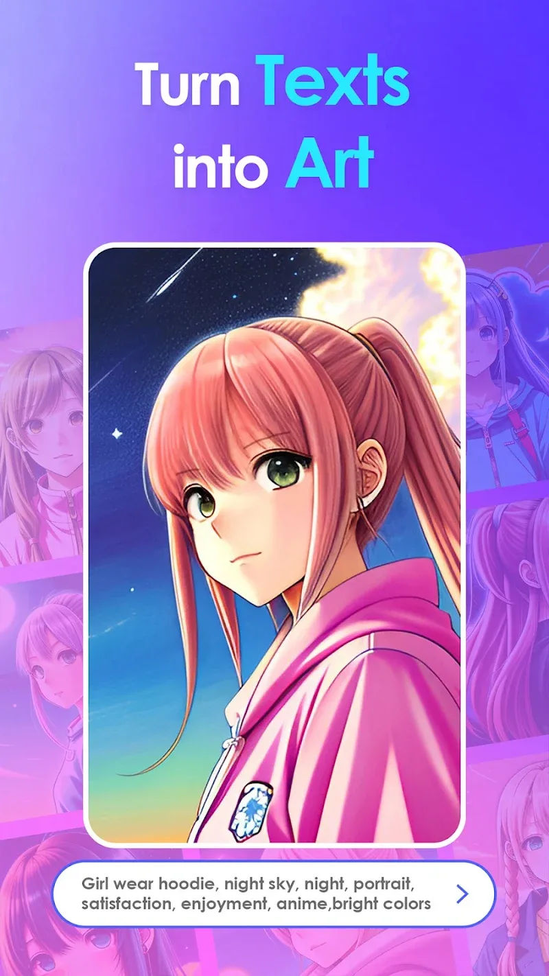 Vivid Ai apk-en ry nights or stormy skies that match desired feels. Small tweaks make big visual impacts.TURN TEXT INTO IMAGES WITH THE AI ART GENERATORTying it together is the ability to make images from text. The AI art generator visualizes words into photos with styles like flowers or galaxies. Effortlessly produce artsy pictures.With powerful AI-enabled transformations, easy stylizing and creative text conversion, Vivid AI provides robust tools to edit photos uniquely. Visually bring your wildest ideas to life.