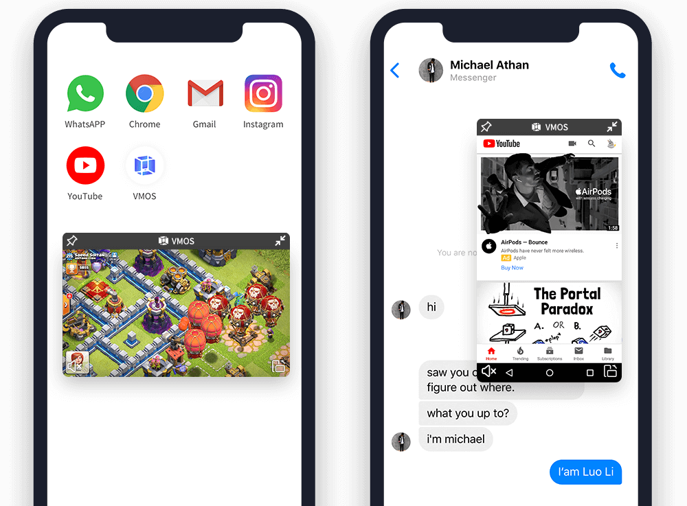 Vmos Pro apk-en cy: Real device information, such as location, is kept private.SEAMLESS EXPERIENCEThanks to dividing the smartphone into 2 parts (or multiple parts), it helps a lot for operations in many different places. Multitasking is considered one of the soft skills that everyone needs to have in this era. The era where work follows home, to bed and even to sleep. And thanks to this app, everything becomes faster, easier, and more convenient. At least you can save yourself some time to rest.Easy Multitasking: Runs as a floating window for easy multitasking.Uninterrupted Use: Use any app or game in the virtual system without disruptions.Broad Compatibility: Compatible with most Android devices and versions.Smooth Performance: Smooth performance and operation.