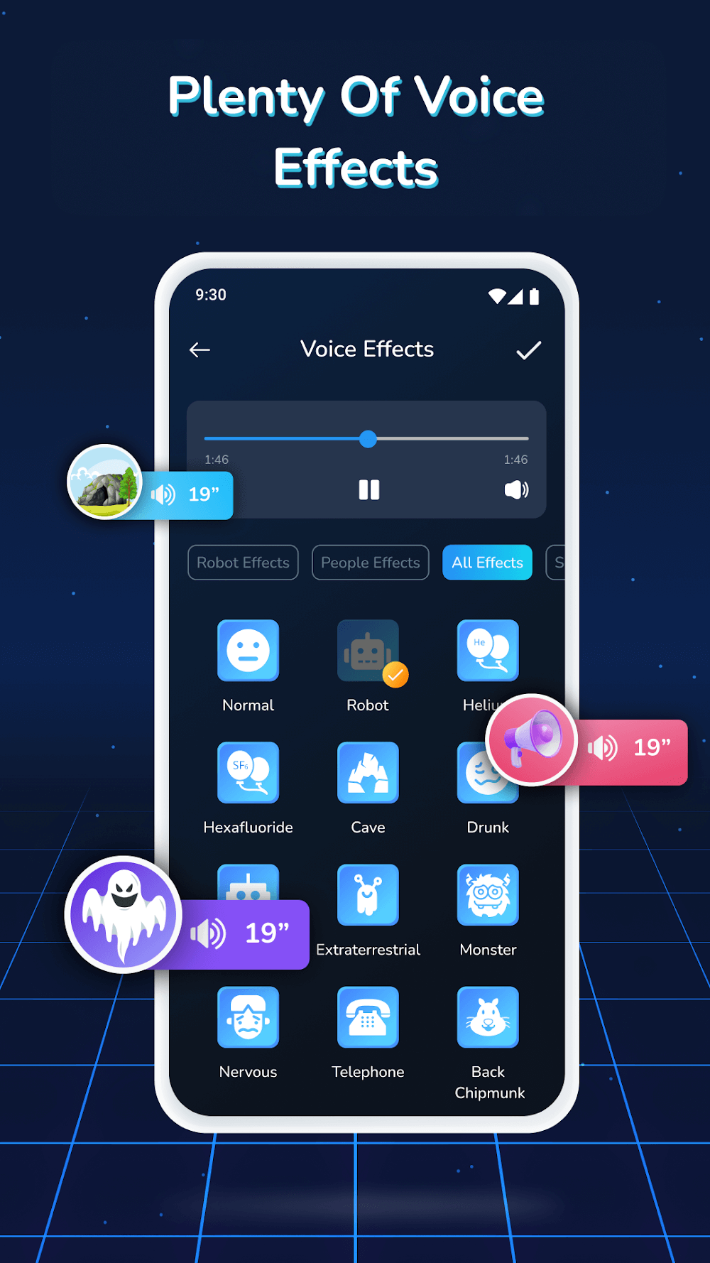 Voice Changer & Sound Effects Mod APK will help you turn your voice into something else with different effects to make them more suitable to prank others or hide your identities. You can do various things with the voice changer, and pranking friends is one of them, but the app ensures your voice is well distorted with certain effects or pitches you prefer.VARIOUS VOICE EFFECTS TO CHANGE FOR FUNThe app features simple voice recording and transformat