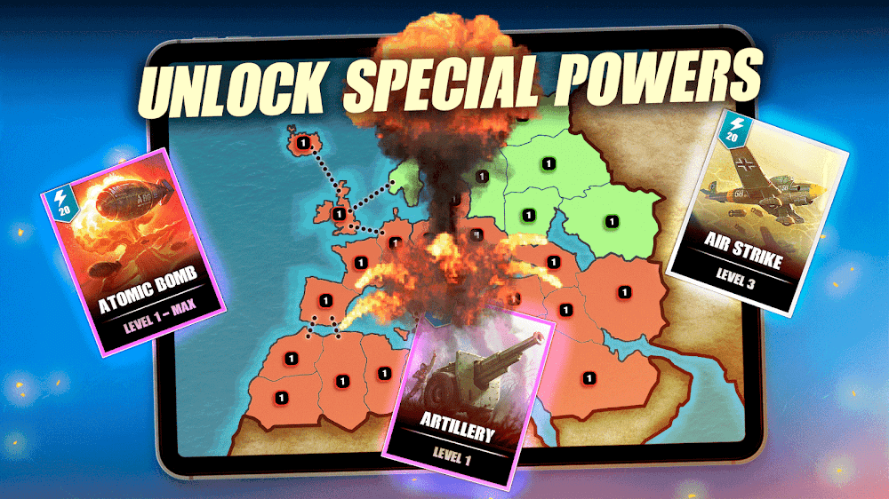 Wartime Glory Mod APK is a turn-based strategy board game that combines elements of traditional war games such as Risk with unique cards that provide a new layer of strategy and tactics.Risk of war – Wartime Glory is a story about a character’s change when she has to fight for a certain meaning. From there, she is forced to find a way to create quality tactics over time. This will help you complete the game’s mission and overcome conflicts.VERSATILE GAMEPLAY MODESEach person’s playing process i