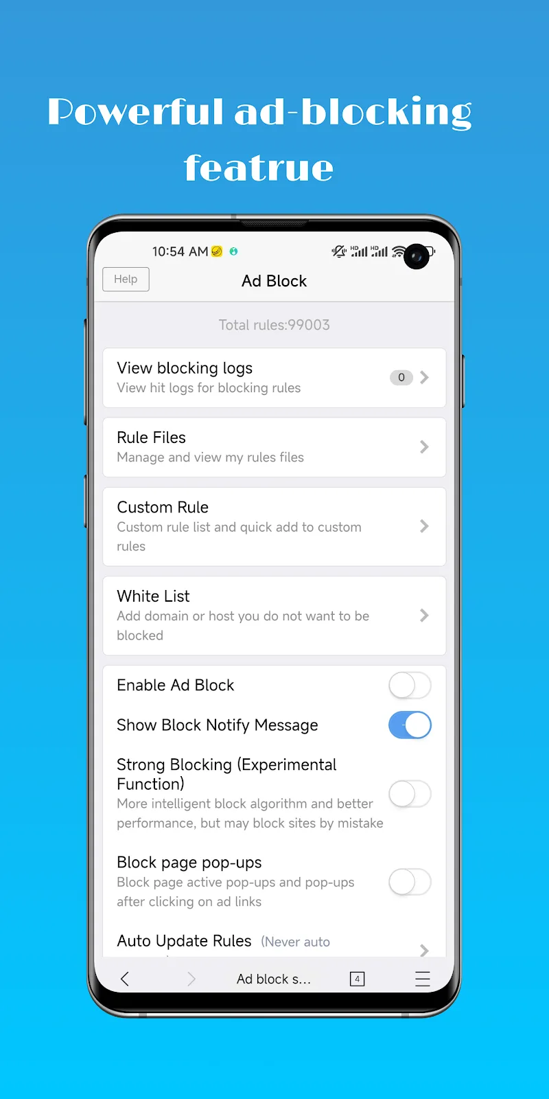 Webshuttle Private Browser apk-en extremely uncomfortable. Bringing you extremely attractive and satisfying user experiences.Supports ABP Rules: Coming to this application, you will come to an extremely perfect ABP. These ABPs will bring you much more convenient and perfect user experiences. Bringing you an extremely safe and versatile application.Custom Blocking Lists: In this application, you can also block the websites you want quickly. Helping you to proactively block bad websites or websites that you do not want to see easily.