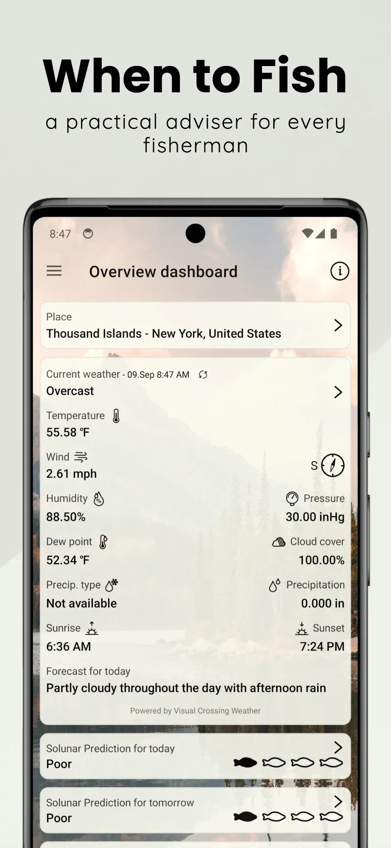 When To Fish Premium moon, and pressure data to give you the most accurate predictions the first time without having to guess too many times, giving you an extremely interesting experience when using.ADVANCED WEATHER INSIGHTSThe application also provides you with extremely detailed and useful weather information. With the information provided to you, you can refer to it to prepare the best for your fishing trip, giving you a perfect day without having to run from rain to sun.Detailed Weather Forecasts: The application will provide you wi