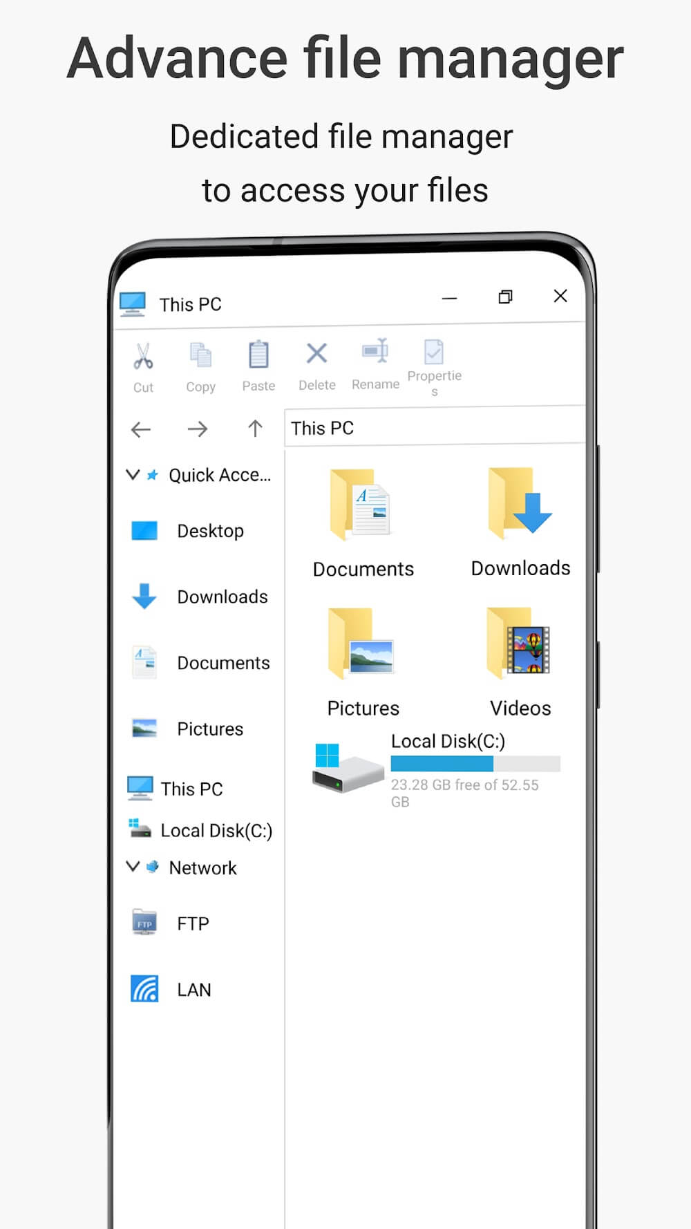 Win 11 Launcher is a great app for people who want the Windows 11 operating system experience on their mobile devices. This app has an easy to use and clean interface, not only can users access their favorite applications but it also makes your workspace clean and tidy. Experience a Windows 11 working space right on your phone.FILE MANAGERBased on the importance of maintaining order and efficiency in the digital space, it is clear that file management forms an integral part. An effective file manger should be able to let users access, organize and even sh