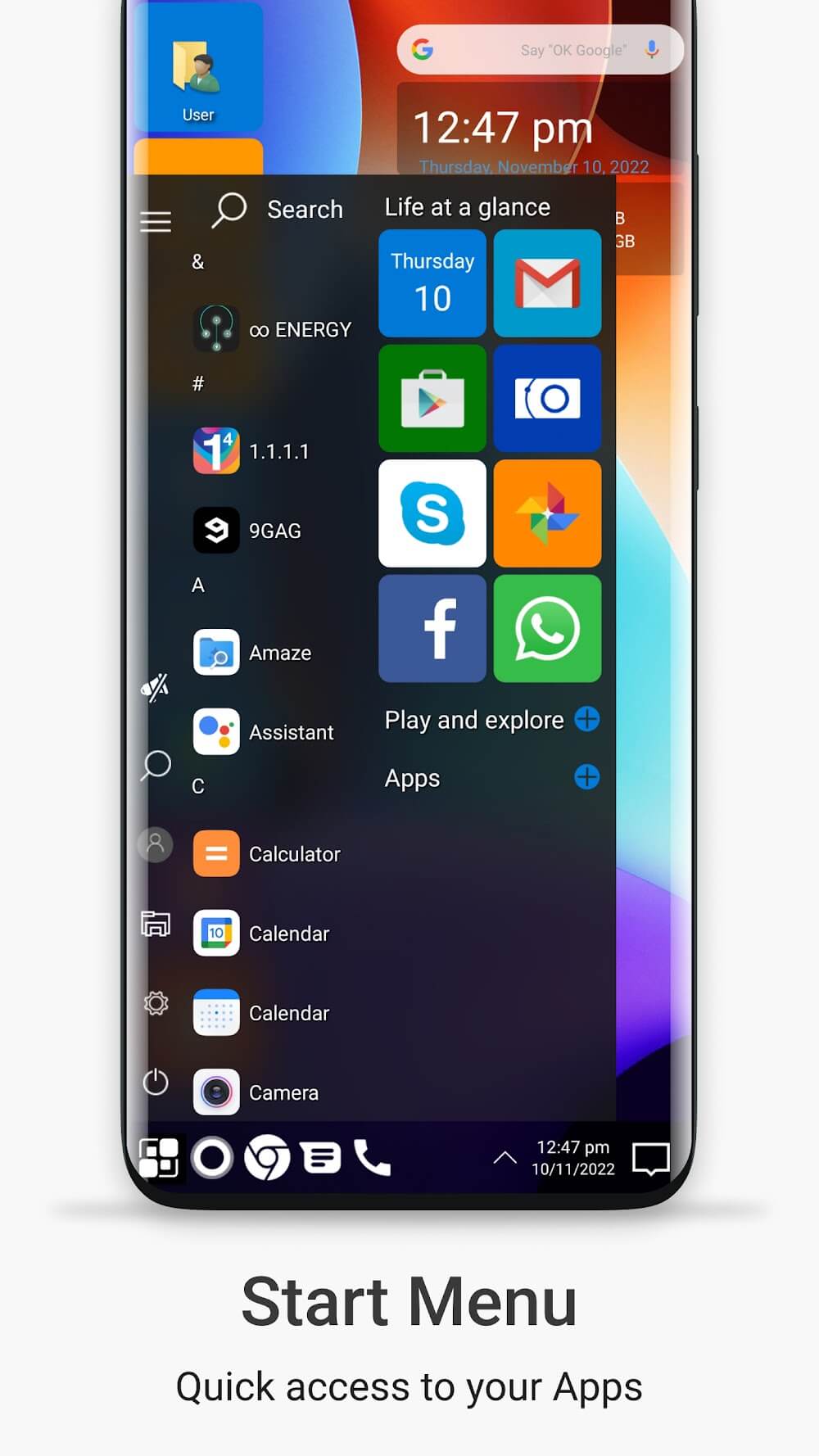 Win 11 Launcher is a great app for people who want the Windows 11 operating system experience on their mobile devices. This app has an easy to use and clean interface, not only can users access their favorite applications but it also makes your workspace clean and tidy. Experience a Windows 11 working space right on your phone.FILE MANAGERBased on the importance of maintaining order and efficiency in the digital space, it is clear that file management forms an integral part. An effective file manger should be able to let users access, organize and even share documents, images and other multimedia files.Comprehensive File Operations: Users can cut, copy, paste and rename files easily. It can help users manage documents and data effectively, create a easy and fast workflow.Advanced Compression Tools: The app offers powerful file compression and decompression tools. Users can compress multiple files into a single file with ease to save storage space or decompress compressed files in one tap, enhancing the working efficiency.Efficient Organization System: The efficient file organization system enables users to create customized folders and shortcuts, which could help users conveniently organize and search files, thus enabling them to keep everything in good order and reducing the time required to locate needed information.THEMESOne of the things that make users feel drawn to applications is the diversity of what they see in the interface. Rich themes will not only bring a new look for your application, but also help users can show their own style.Personalized Color Schemes: Users can personalize the theme color as per their individual preference. This allows users to be able to create interface of their own that suits their style and hence makes user experience pleasing.Stylish App Display: The application displays Android applications in modern and eye catching design tiles. This user friendly interface makes home screen live and helps users to get their access favourite applications more easily.Windows-like User Experience: Similar to Windows phone user experience, it helps Android users get used to the application quickly and interact with it easily, making them more comfortable and efficient in daily work.