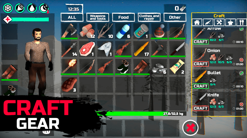 Wintercraft Survival Forest apk-en of survival. You will have to overcome challenges to survive here. You are alone and have no allies, your ally is your missing father. So, try to overcome the danger and find your father and leave this forest with him.Trek Through Forests: in this forest is not difficult because of the dense snow, but the terrain here is also very dangerous. Players will have to walk through snowy forests, over hills, grass fields and many more difficult terrains.Discover New Places: In the search for food sources, players will also have the opportunity to discover new resources and new lands. You will reach new places with vast landscapes, providing a great exploration experience.Find Story Clues: Along the way, pay attention and collect as many items related to your missing father. These items will help you get clues and find your father more easily.CHALLENGING SURVIVAL GAMEPLAYThis is a survival game, so always remember to protect your health. Keep your body warm against the cold in the forest and always replenish your energy to overcome the harsh challenges here.Defend Against Dangers: Your mission is not just to find food and collect items. You also need to be able to defend yourself against dangers from wild animals such as dogs and bears and avoid their attacks to save your life.Face Realistic Challenges: As a top survival game, the game designs super realistic challenges such as extreme weather, food shortages, and injuries. Players will experience the fiercest, most thrilling survival.