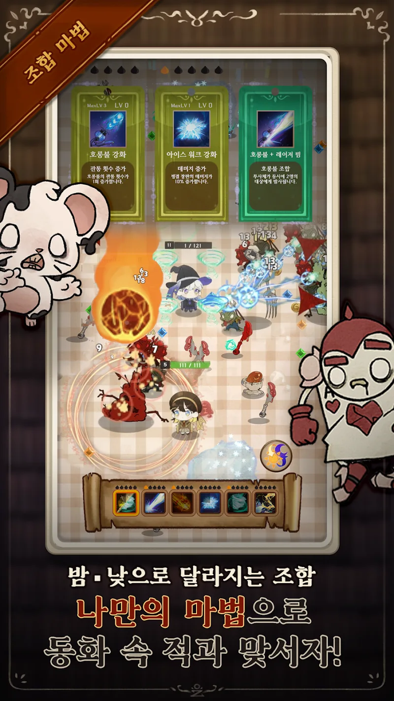 A crazy role-playing and fighting journey is about to take place in WitchArchive 마음의서고. Players will solve the problems of the fairy tale world. Strange creatures are attacking the old stories, and the librarian will have to fight against them and protect the fairy tale library.DUAL-MODE GAMEPLAYAt any time of the day, strange creatures will visit the library and destroy many things. Players will take on the role of the librarian to solve the problems that are happening. There are two versions inside the character you control, day and night, both of which can become stronger.Day Night Strategy: Each player w