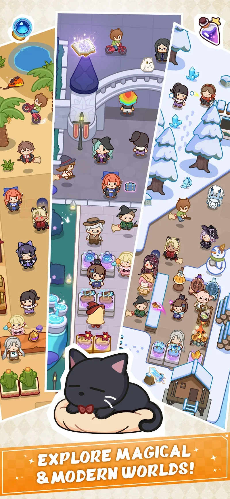 Witchy Wardrobe Idle Shop Premium pire: Players choose unique locations like a modern city center or a mysterious oasis to open a large chain of stores. This game lets you build your own magical empire.STYLE AND STRATEGYBuild, collect, and relax as you transform your old house into a place filled with magical creatures. Inherit a beautiful house from your old witch, redecorate it, and collect over 40 cute creatures.Express Yourself: Design hundreds of outfits and decorate your cozy workshop with customizable tables, chairs, furn