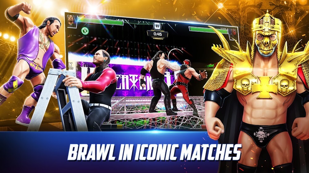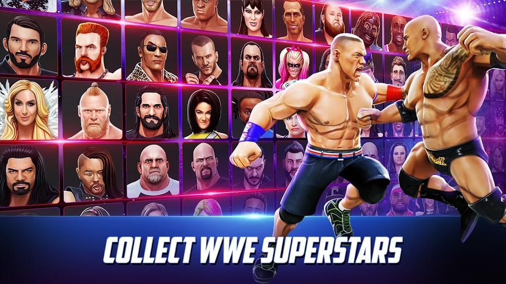 WWE Mayhem Mod APK is a fun wrestling game where players may earn rewards in spectacular battles.WWE Mayhem is a wrestling-themed game where players can transform into any character that looks similar to a famous real-life wrestler. Anyone can access the levels in this game because it does not require control skills; it just requires swipes and taps in a completely reasonable way. In particular, throughout the gameplay, players can also accompany characters with unique skills and can finish off opponents with powerful attacks. Surely, you will have yourself a collection of victories and reach the character you always dreamed of.MASSIVE ROSTER OF WWE LEGENDS AND SUPERSTARSIf you love wrestling matches and want to transform into a famous character, don’t hesitate to experience WWE Mayhem. This is a game designed based on a fighting style where two characters will attack each other and use the techniques they have to defeat their opponents. In particular, if other fighting games have attack moves for each character, this game will also inherit that characteristic. The attacks of wrestlers that you see on TV can be recreated in a completely simple way when the conditions are right.Famous characters: Once you