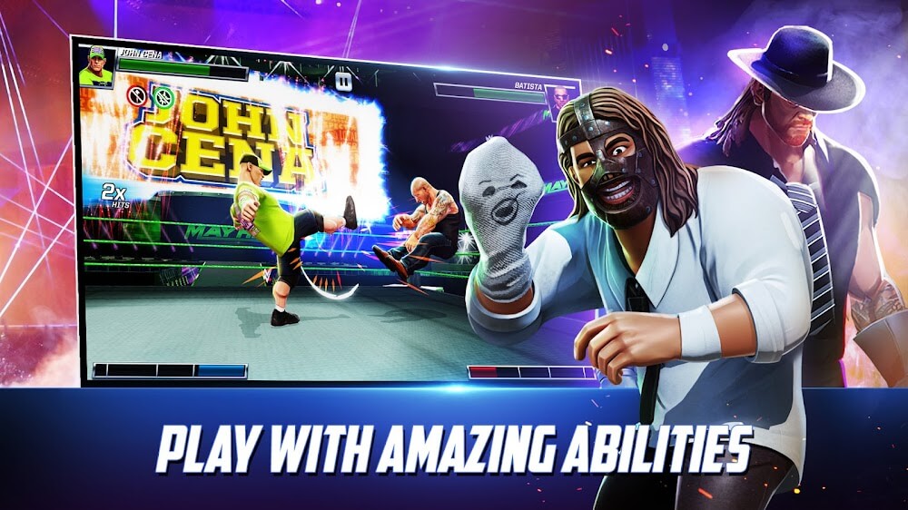 Wwe Mayhem 2 Mod Apk find the WWE gameplay, you will accompany famous wrestlers like John Cena and defeat many opponents.Unlock and upgrade: Power never stands still, so players must always find ways to optimize their characters to new levels.FAST-PACED ARCADE WRESTLING ACTIONThe control method that WWE Mayhem provides is completely suitable for many people, and they will realize this after completing the tutorial level. They can see that the game screen is not covered by controls. This means all operations are done entirely with swipes and taps. So, you just need to quickly touch the enemy or perform a swipe action, and your character will immediately perform a light or strong attack. In addition, you will be surprised when the protection mechanism is activated when you click on the character. All attacks can be performed simply and require the player to observe and react as quickly as possible!Perform signature actions: As a wrestler, the player will launch powerful attacks until the opponent is completely defeated.Compatible with smartphones: Combat gameplay with features that have a high level of stability and compatibility with handheld devices.WEEKLY LIVE EVENT CHALLENGESIn a game related to wrestling, like WWE Mayhem,