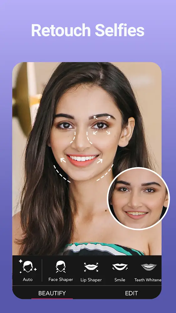 Youcam Perfect Premium tistic Portraits: Blur the background with the tool to help highlight the subject image you want.Amuse Friends: Make fun photos to tease your friends by editing their pictures.LIVE CAMERA EFFECTS & FILTERSBeauty effects are available when taking selfies, and they are perfect for taking photos without the need for additional editing. Extremely rich collection of color filters, advanced photo adjustments, automatic beautification with AL, makeup tools, body editing tools, changing hairstyles and expressions,…One Tap Beautify: With just one touch, you have smooth white skin, whitened teeth, and a balanced faceBlemish Remover: Removes wrinkles and blemishes, giving you flawless skin