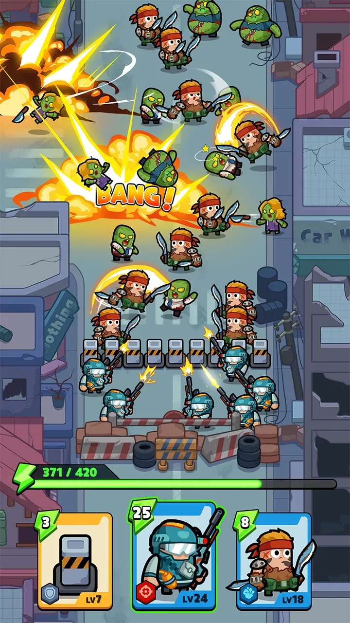 Zombie City Attack Army Premium antic encounter.UPGRADES ENHANCE YOUR DEFENSESAs you play, you can upgrade your army’s power to bolster their attacks. This engages you with a sense of progression as the zombies get tougher over time. Do you upgrade your ranged heroes to do more damage from afar? Or invest in melee heroes to hold the line? The upgrade path you choose impacts your strategy down the line. Along with hero selection, upgrades provide another layer of tactics to consider in each encounter.INTUITIVE AND RESPONSIVE CONTROLSDespite the strategic depth, Zombie City ensures the action is always readily accessible with its easy control scheme. Deploying heroes and commanding them during combat feels intuitive and responsive. The controls are streamlined so the focus stays on quick thinking rather than wrestling with a complicated interface. This emphasis on accessible controls paired with strategic choice makes for engaging, addictive gameplay.SHORT YET INTENSE