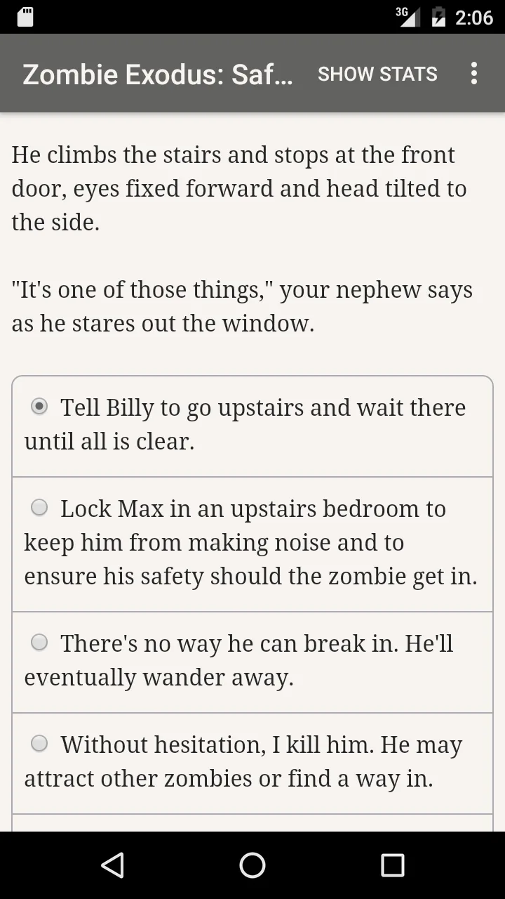 The apocalypse has come and wiped out human civilization from the Earth. But of course, there will still be a number of humans left after that terrible disaster. Until now, when dawn comes again, when you think you can survive in this time, another disaster strikes. Zombies are a horrible and inhumane species. They attack humanity to completely destroy humanity. Zombie Exodus: Safe Haven is a story, a novel. Meaning that the game has no animation or sound at all. The special thing is that the final outcome of this novel is decided by you.MAKING YOUR OWN CHARACTERThe main character will start their adventure to explore the wild world aft