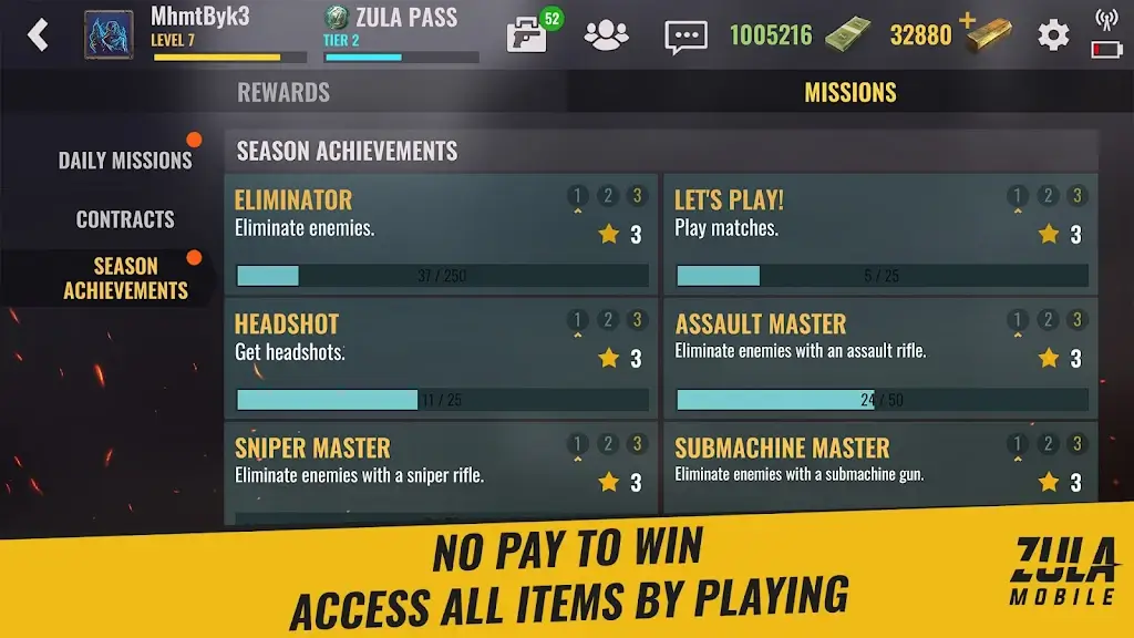Introducing Zula Mobile MOD APK – the ultimate 3D online multiplayer FPS game with high-quality graphics and intense gameplay.Plunge into the exciting world of Zula Mobile, a mobile first-person shooter that allows you to compete, strategize, and emerge victorious, all in the stunning landscape of 3D multiplayer battles. Unleash your inner e-sports professional, instill fear in your enemies, and engage in a gaming experience you won’t soon forget – without putting a single dime on the table.A CONTINUOUS STREAM OF REWARDS – BATTLE PASSThere is a common saying: the more you play, the more you win! Zula Mobile, the dynamic 3D Online FPS, echoes this sentiment by offering rewards through its enticing seasonal Battle Pass system. A new season kicks in every 2-3 months, presenting you with countless opportuniti
